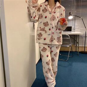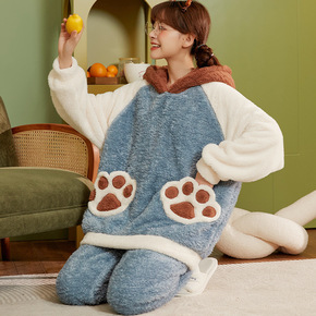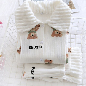 卡通可爱睡衣女冬季珊瑚绒加厚家居服套装法兰绒爆款代...