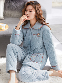 睡衣女冬珊瑚绒三层夹棉加厚保暖加绒棉袄法兰绒可外穿...