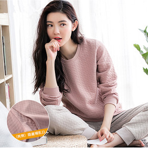 睡衣女秋冬款纯棉加厚夹层空气棉夹棉长袖冬季运动家居...