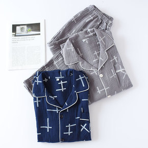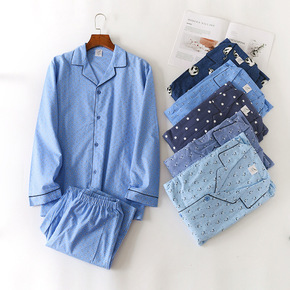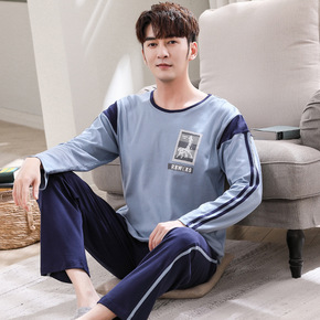春秋新款男士全棉邹布睡衣长袖加大码家居服宽松休闲外...
