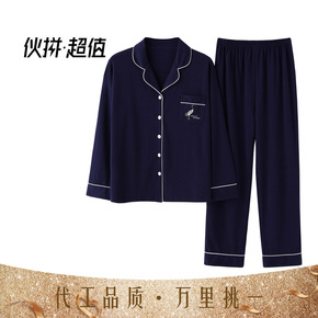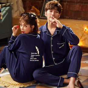 鹿时情侣睡衣春秋款纯棉长袖冬季情侣款男士家居服女秋...