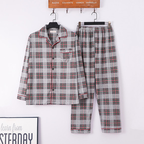 男士睡衣春秋款长袖格子开衫宽松大码秋冬薄款中年爸爸...