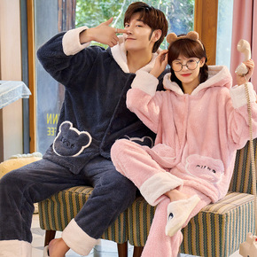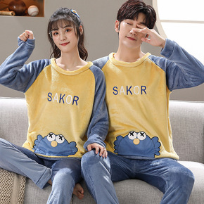 2021秋冬季情侣睡衣珊瑚绒加厚加绒保暖可爱卡通男...