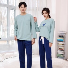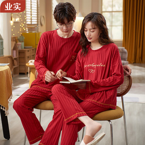 红腾春秋时尚甜美长袖情侣睡衣棉质宽松休闲套头男女家...