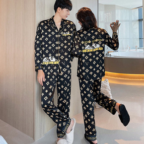 情侣睡衣女秋冬新品长袖长裤套装卡通狗狗冰丝开衫男士...