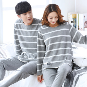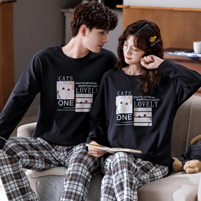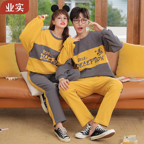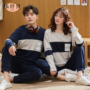 新款情侣睡衣女春秋季纯棉长袖运动休闲男士大码冬款全...