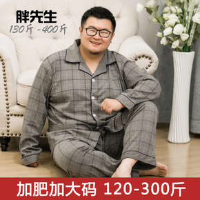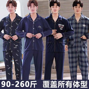 春秋季特大号长袖睡衣男士全棉加肥加大码家居服套装开...