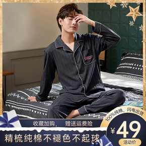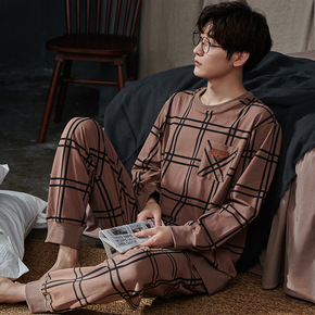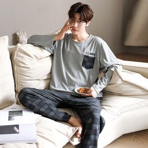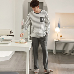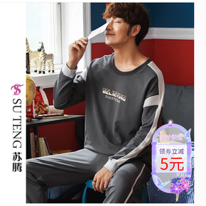 新款男款睡衣男士春秋款秋季纯棉韩版长袖家居服休闲可...