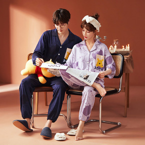 2021年新款情侣睡衣女士春秋季天薄款家居服纯棉大...