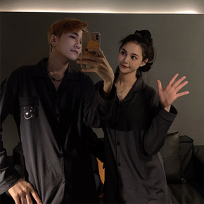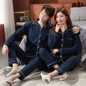 结婚情侣睡衣女春秋款长袖纯棉韩版网红男士秋冬全棉家...