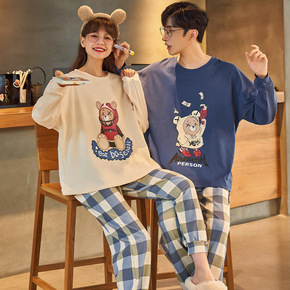 情侣睡衣春秋款纯棉长袖女士男生秋季可爱2021年新...