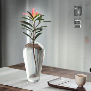 透明玻璃花瓶插花水养梅瓶禅意水晶摆件家居客厅装饰日...