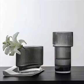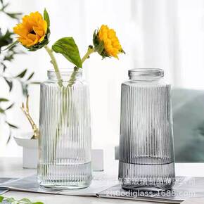 北欧条纹收口玻璃花瓶透明居家客厅餐桌摆件水养鲜花富...