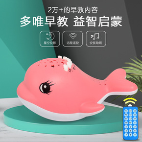 婴儿早教安抚小飞机小海豚带遥控音乐星空投影故事机玩...