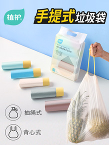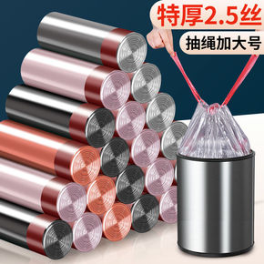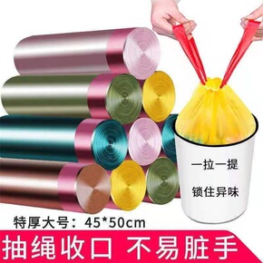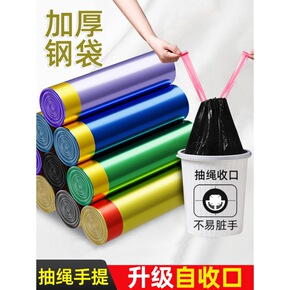 抽绳垃圾袋手提式加厚家用大号黑色彩色穿绳式厨房塑料...
