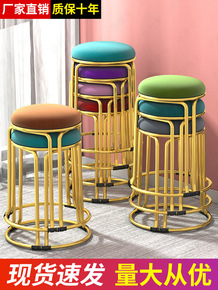 加厚钢筋凳北欧凳子家用餐桌凳简约布艺轻奢高圆凳时尚...