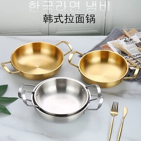 不锈钢韩式泡面锅家用单人海鲜锅双耳平底锅金色干锅拉...