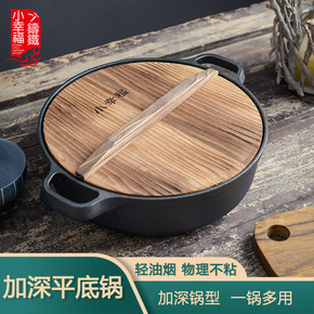 铸铁平底锅无涂层不粘锅多功能煎锅家用生铁烙饼锅多用...