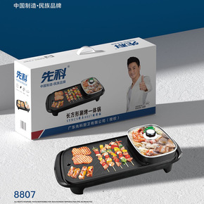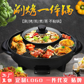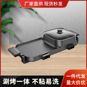 室内实用涮烤一体锅鸳鸯电热火锅烧烤炉烤盘小号双控方...