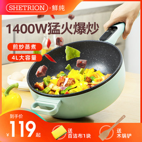 电磁炉锅双耳无涂层炖锅家用老式加深炒菜锅平底不粘锅...