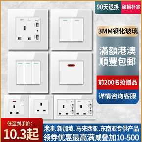 英式13A带USB电灯制开关钢化玻璃白色香港方插英...