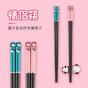 Usemd筷子家用网红情侣款日式合金筷2双装分餐筷...