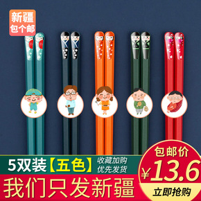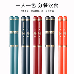 筷子家用耐高温5双创意防滑防霉日式分餐筷合金筷...