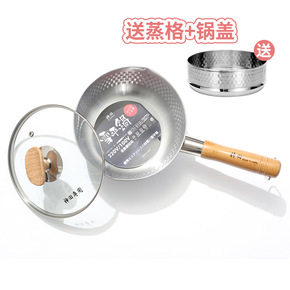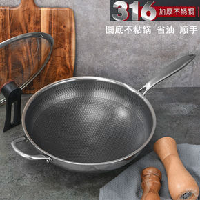 304不锈钢炒锅不粘锅无涂层油烟非安电磁炉家用炒菜...