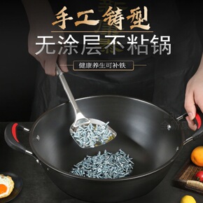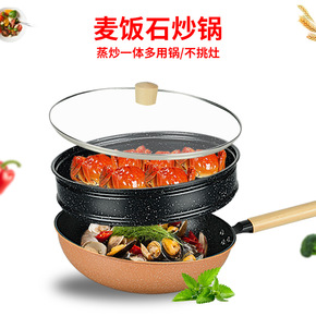 韩国麦饭石炒锅不粘锅家用炒菜锅铁锅家用电磁炉适用平...
