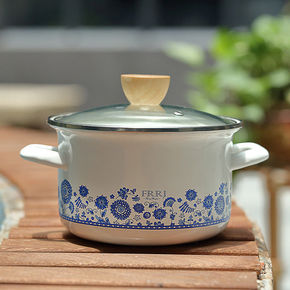 卷边搪瓷锅小奶锅宝宝辅食锅日式珐琅婴儿汤锅家用木柄...