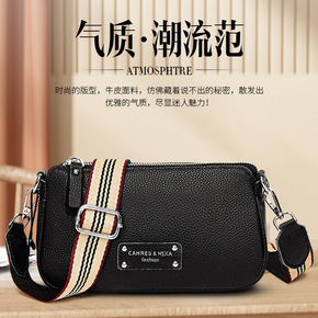 真皮女包2022欧美百搭潮宽带斜挎包头层牛皮休闲单...