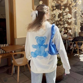 2022春季新品可爱小翻领学院风卡通小熊宽松显瘦时...