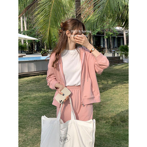 网红 2021小个子穿搭薄款洋气减龄学院风新潮卫衣...