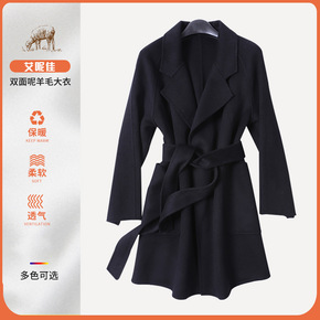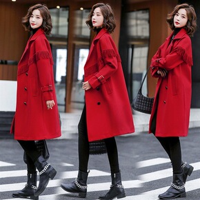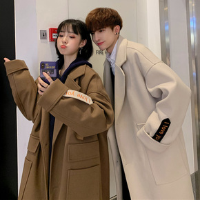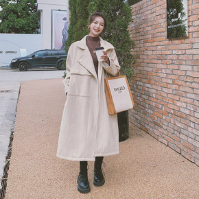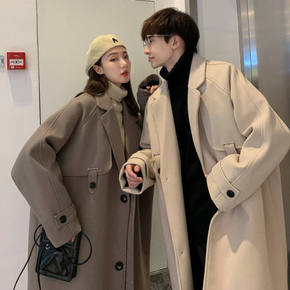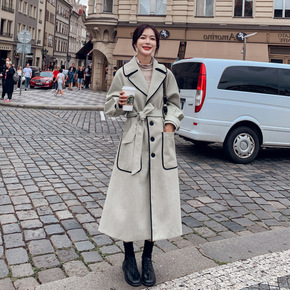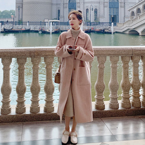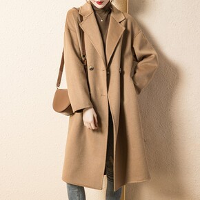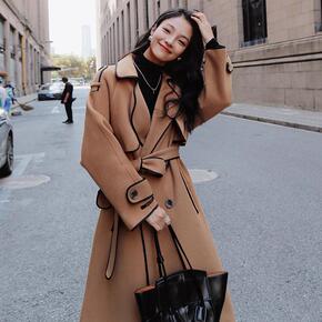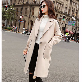 毛呢外贸女2021秋冬新款中长款韩版宽松翻领妮子大...