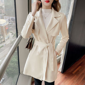 2022秋冬新款鹿皮绒收腰中长款夹克风衣大衣设计感...