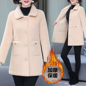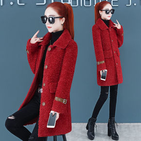 加绒加厚中长款羊羔毛外套女2021冬新款韩版宽松大...