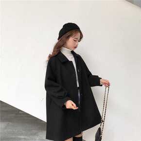 新款秋冬季毛呢衬衫外套女学生中长款韩版宽松小个子百...