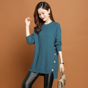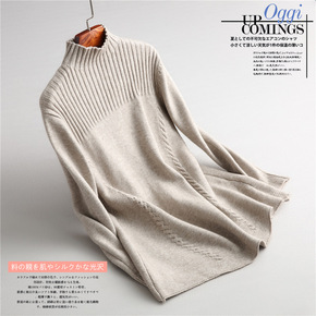 2021秋冬季新款韩版女装高腰开叉套头高领针织衫中...