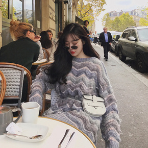 大码女装秋冬季套装女2022新款宽松拼接针织毛衣显...