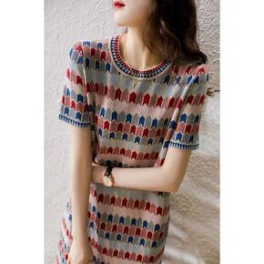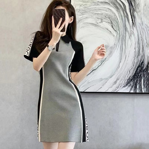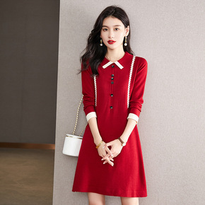 2022春季新款V领针织连衣裙韩版气质学院风毛衣连...
