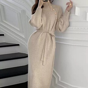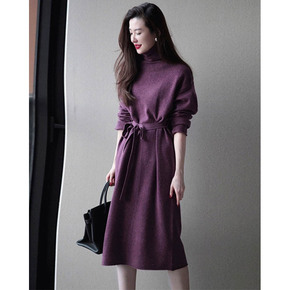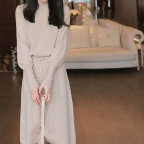 2021毛衣女 秋连衣裙韩版长袖灯笼袖半高领气质休...