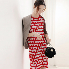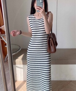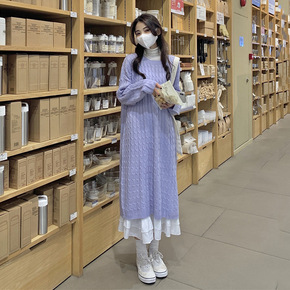 春秋季针织连衣裙两件套装女中长款配大衣小个子过膝打...