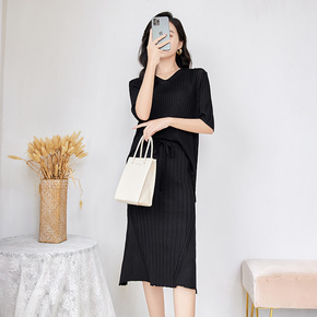 跨境亚马逊热销欧美时尚3色毛衣套裙针织下摆开叉长裙...