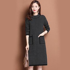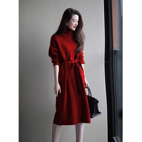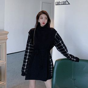 欧洲站秋冬高级感赫本风配大衣高领针织毛衣裙内搭收腰...