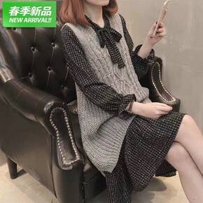 马甲裙套装大码女装春秋季两件套毛衣背心裙显瘦宽松喇...
