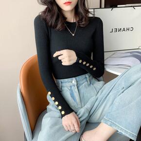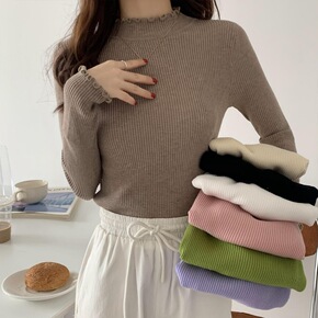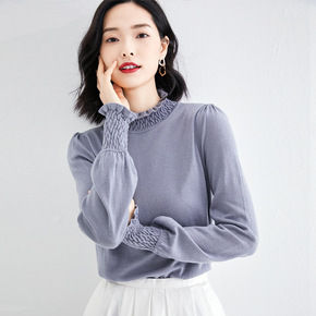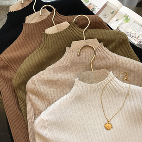 韩版慵懒风长袖针织衫初秋上衣女新款今年流行漂亮半高...
