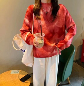 毛衣秋冬2022复古日系慵懒风扎染宽松简约套头中长...