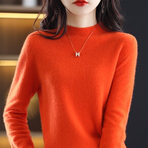 加厚100纯羊毛衫女秋冬高领长袖羊毛毛衣百搭套头打...