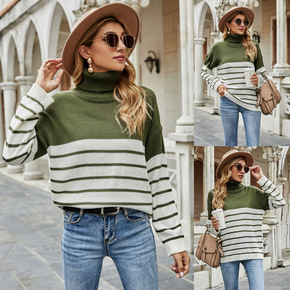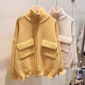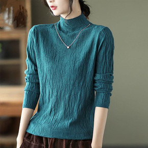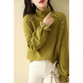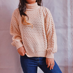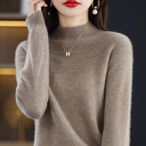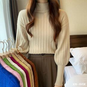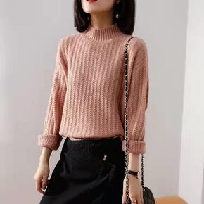 斜纹针织衫女秋冬新款半高圆领长袖宽松加厚显瘦毛衣内...