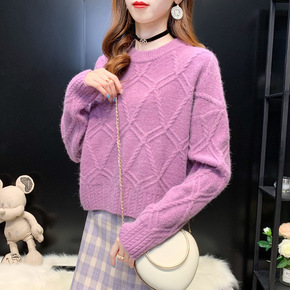 2022秋冬潮款圆领宽松麻花针织套头衫韩版慵懒风毛...